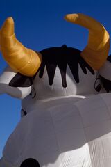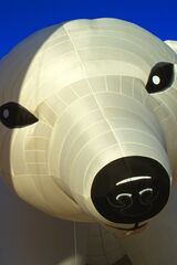 In the 1980s, numerous hot air balloon displays, known as "Special Shapes," emerged across Europe and North America, lasting for more than a decade. These balloons featured themed characters and objects, like a Flying Cow, a Frog, a Pig, or even a Harley-Davidson motorcycle.